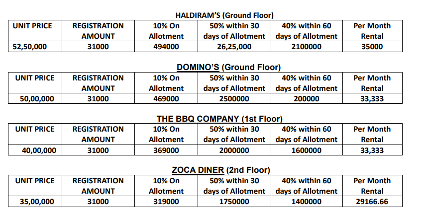 🤝Leased Out to Leading Brands such as Haldiram’s, Domino’s, The BBQ Company, and Zoca Diner.